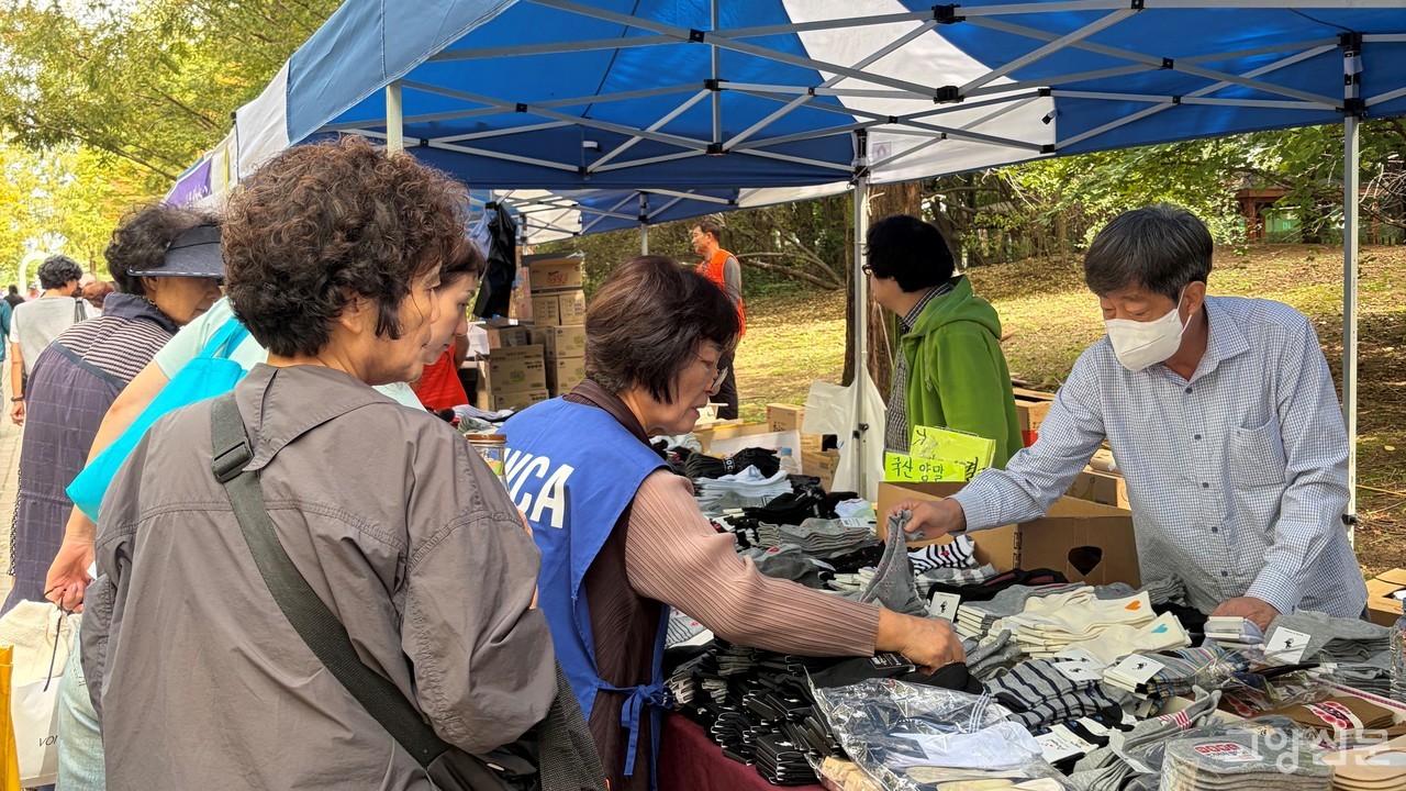 [고양신문] 파란 가을 하늘 아래, 북적한 동네 잔치가 열렸다. 17일 주엽역 인근 강선공원에서는 ‘고양YWCA 나눔바자회’가 열려 시민들의 발길을 모았다. 30년 넘게 자리를 지켜온 이번 행사는, 여성의 인권을 신장하고, 어려운 여성의 삶을 돌보자는 취지로 진행됐다.