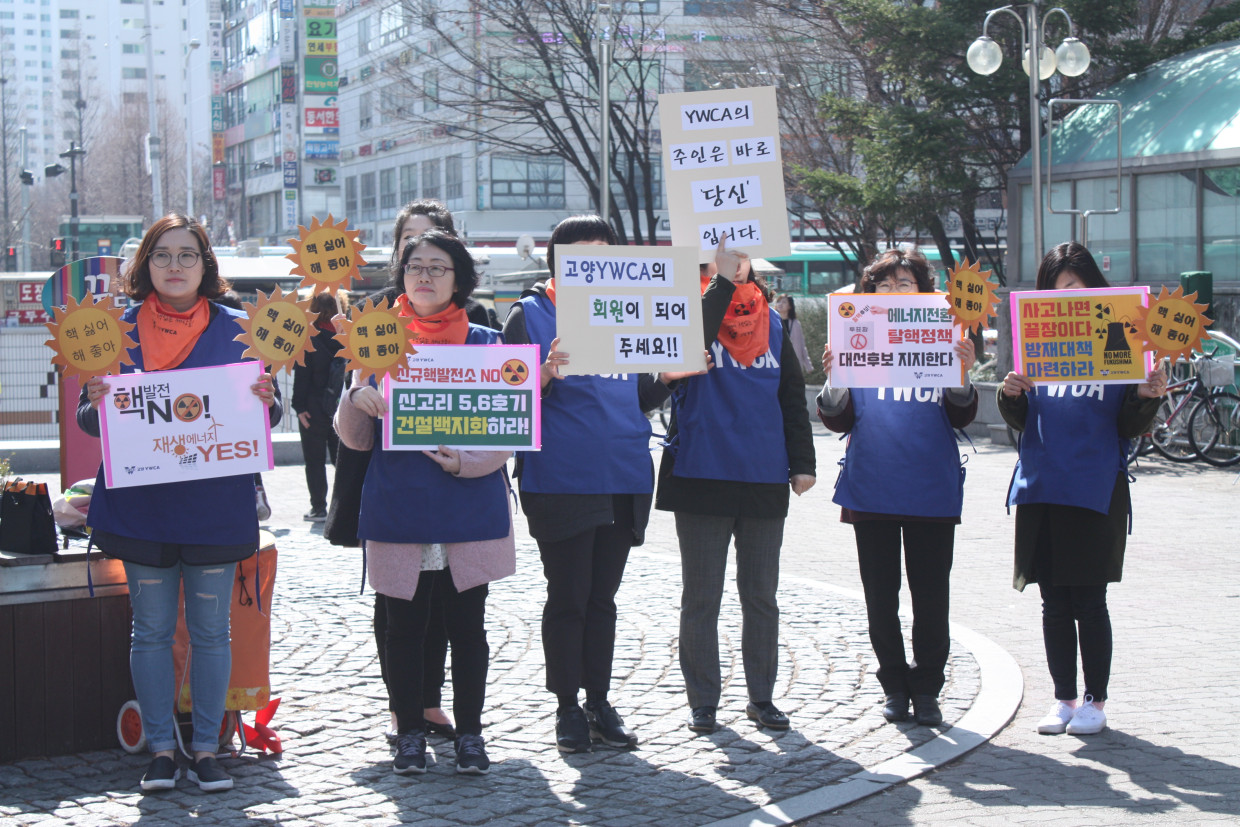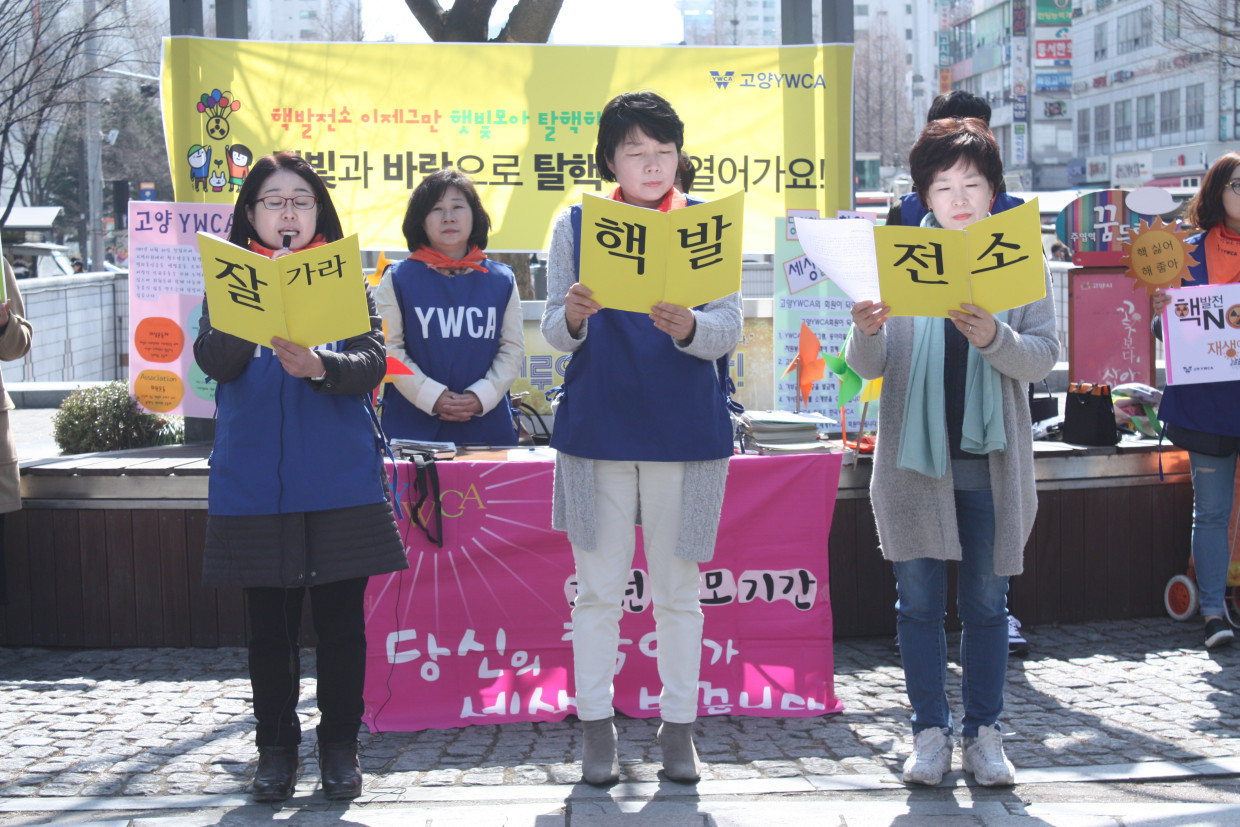 고양YWCA는 매월 셋째주 수요일, 주엽역에서 탈핵캠페인을 진행한다.