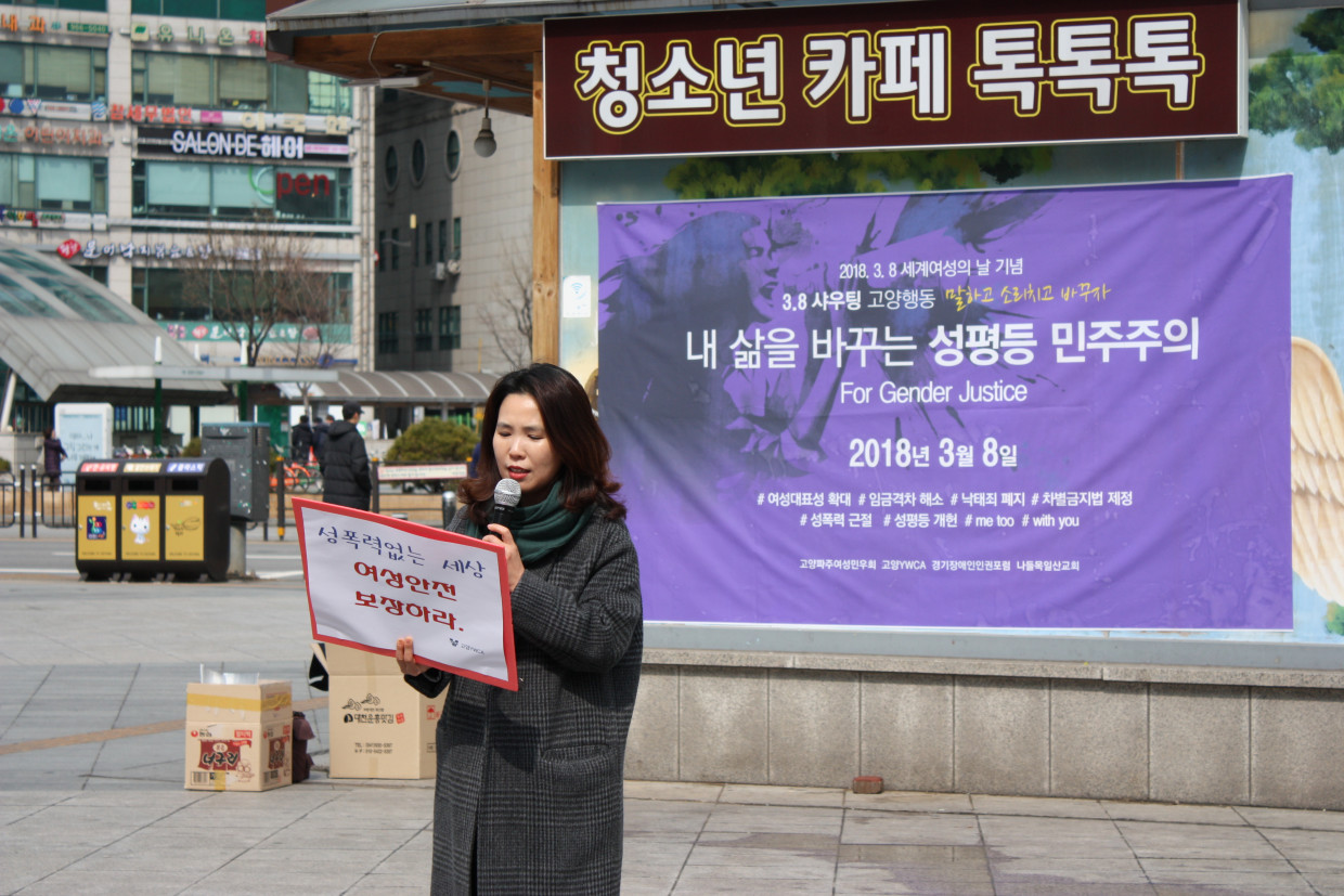 대화역, 주엽역, 정발산역, 화정역으로 흩어져(고양YWCA는 주엽역) 보라색 장미를 여성의 날을 축하하는 의미로 나누었으며, 이 후 화정역에서 모여