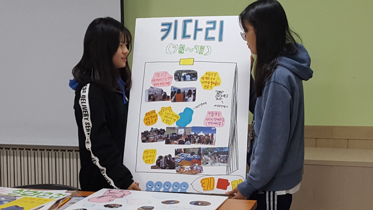 1. EM비누와 실리콘 컵 판넬 2. 환경보호 판넬 3. 키다리활동 판넬 (4~6월) 4. 키다리활동 판넬 (7~9월) 로 총 4팀이 4개의 판넬을 제작했답니다. 나눔행사에서 보여드릴 판넬을 조별로 제작하며 창의성, 전달력, 디자인이 뛰어난 '판넬 왕팀'을 뽑는 시간도 가졌습니다!