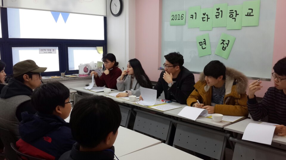 2016년 청소년 주말학교인 키다리학교 참여자 모집을 위한 면접을 진행하였다.
