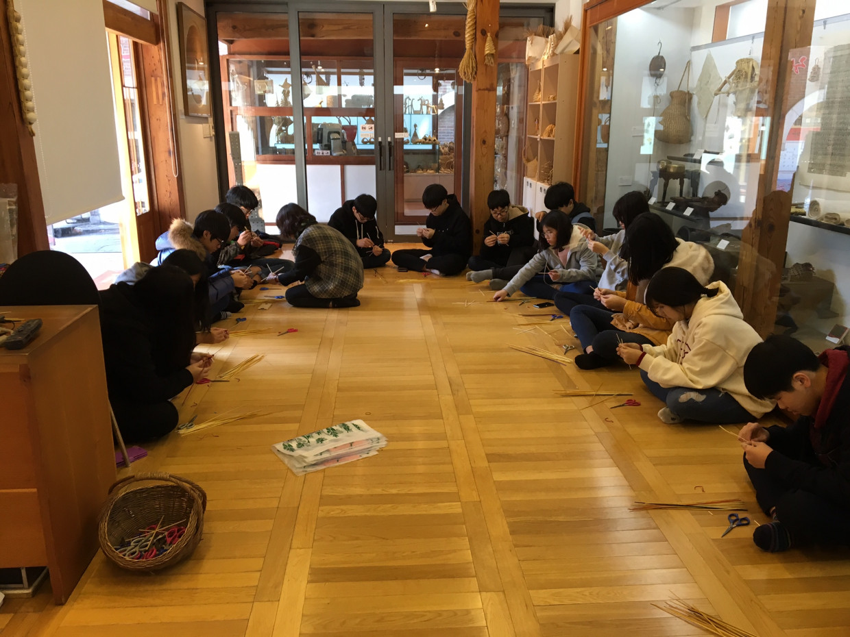 직접 짚풀로 컵받침을 만들어보는 시간을 가졌습니다.
