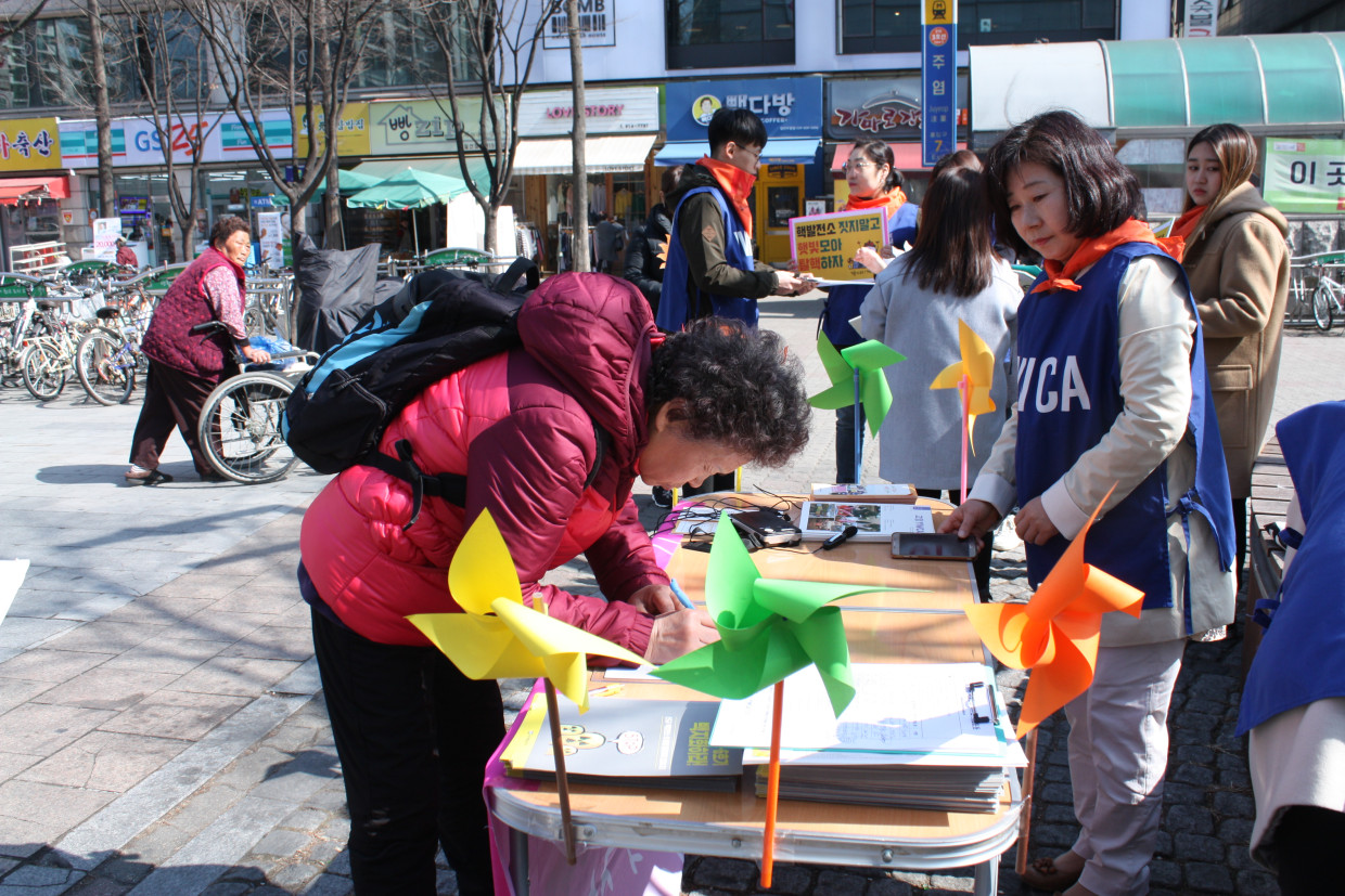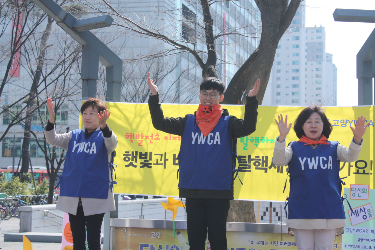 고양YWCA는 매월 셋째주 수요일, 주엽역에서 탈핵캠페인을 진행한다.
