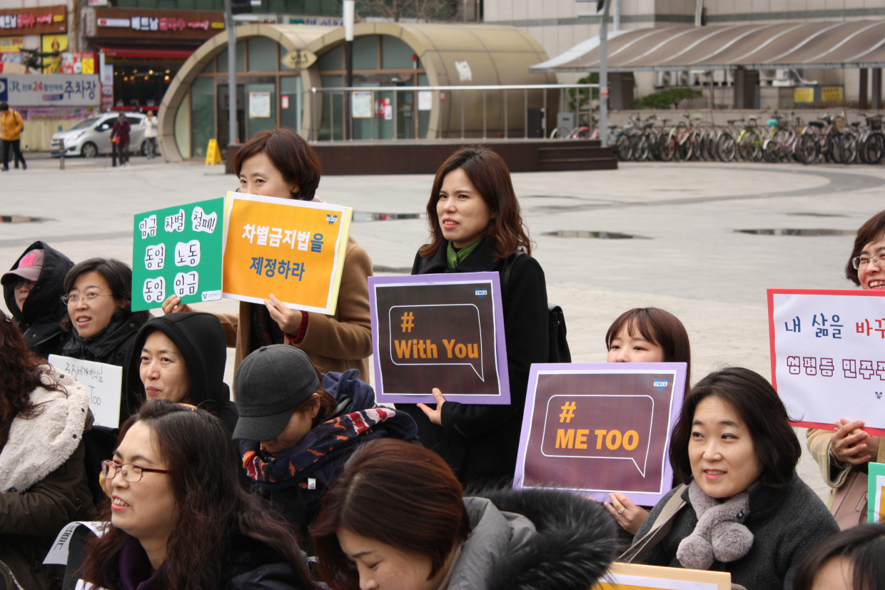 ‘내 삶을 바꾸는 성평등 민주주의’라는 주제로 집회를 가졌습니다. 개인의 일상에서 겪는 성차별에 대한 이야기를 나누었을 뿐만 아니라 여성들에게 가해지는 일상적인 성폭력에 대해 법적 제도가 전혀 보호해주지 못하는 현실적 한계를 지적하며 법개정에 대한 강력한 요구를 하는 시간도 가졌습니다.