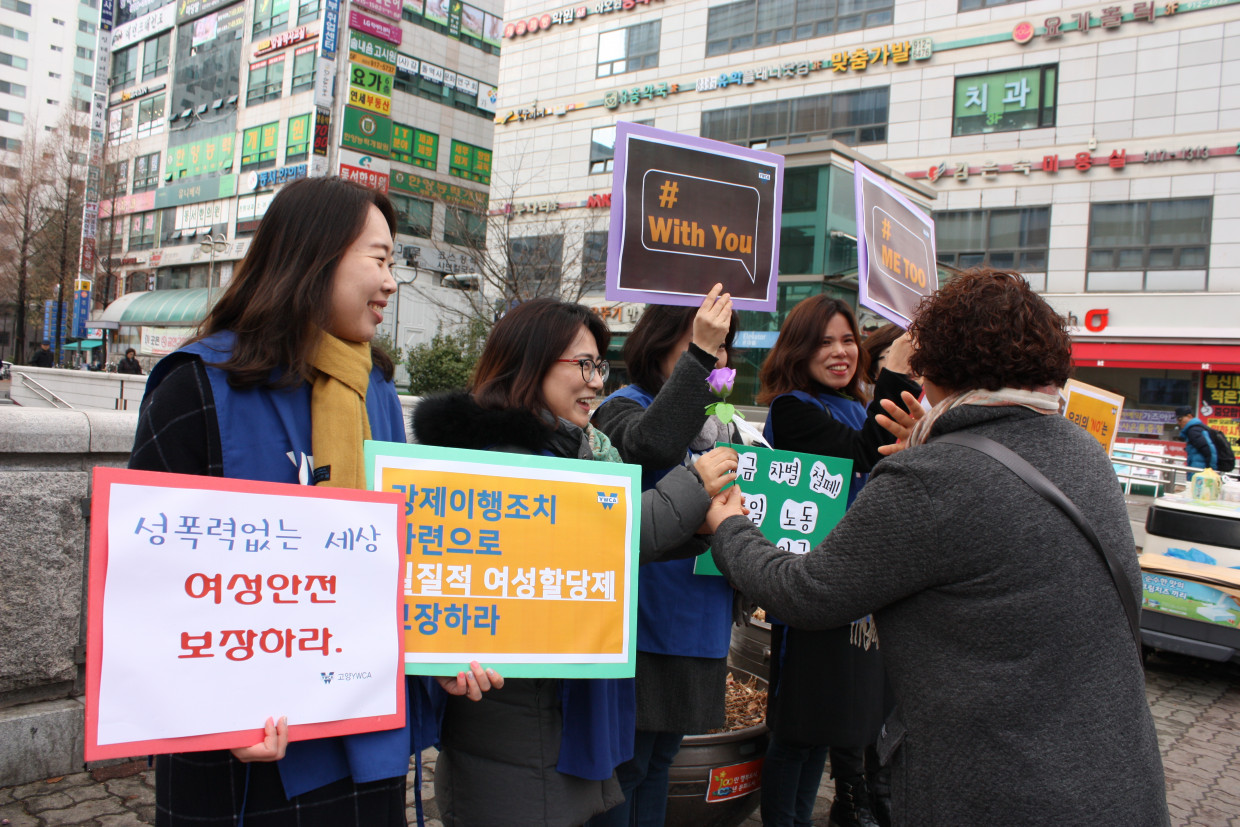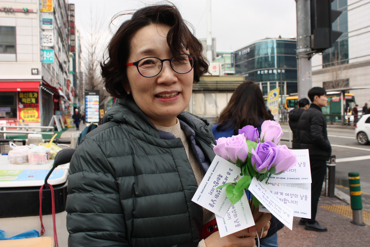 대화역, 주엽역, 정발산역, 화정역으로 흩어져(고양YWCA는 주엽역) 보라색 장미를 여성의 날을 축하하는 의미로 나누었으며, 이 후 화정역에서 모여
