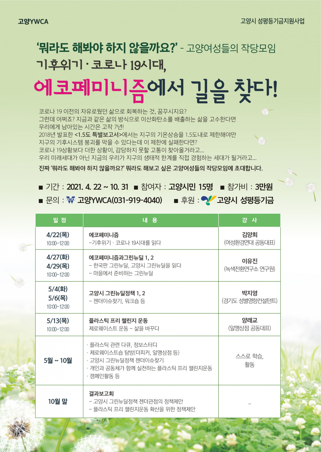 [고양시 성평등기금 사업] 뭐라도 해봐야 하지 않을까요?-기후위기, 코로나 19시대, 에코페미니즘에서 길을 찾다!