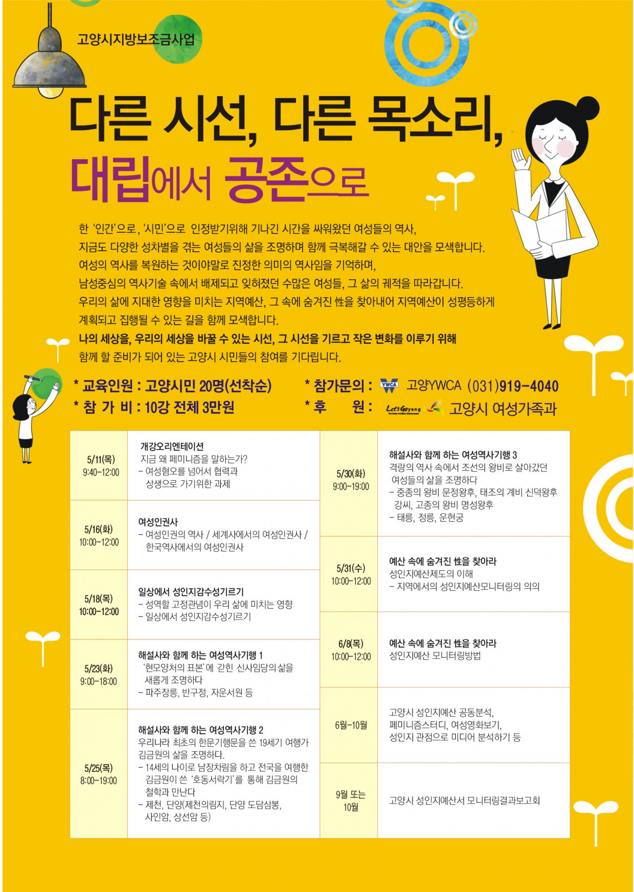 고양시 지방보조금 사업으로 진행되는 성인지역량강화교육을 안내합니다.