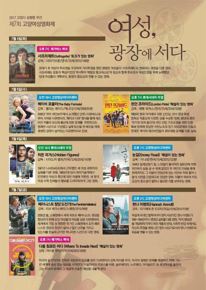 제 7회 고양여성영화제가 7/4(화) - 7/7(금)에 열립니다.