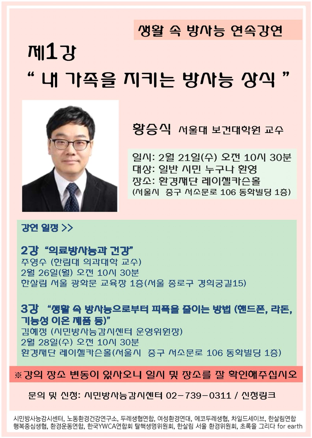 2월을 맞아 우리의 일상에서 접하는 방사능의 위험성과 그 피해를 줄이는 방안에 대한 강의를