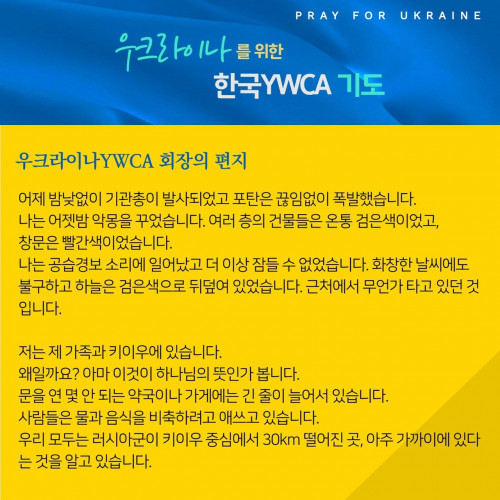 우크라이나를 위한 기도 - 우크라이나 YWCA회장의 편지
