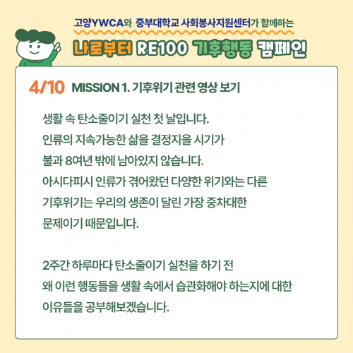 🍀나로부터 RE100 기후행동 캠페인 1일차🍀MISSION 1. 기후위기 관련 영상 보기생활 속 탄소줄이기 실천 첫 날..
